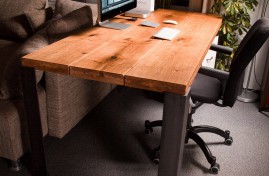 Auf Kundenwunsch fertigten wir einen Rustikal-Massivholz Schreibtisch in Eiche. Fläche leicht gebürstet...